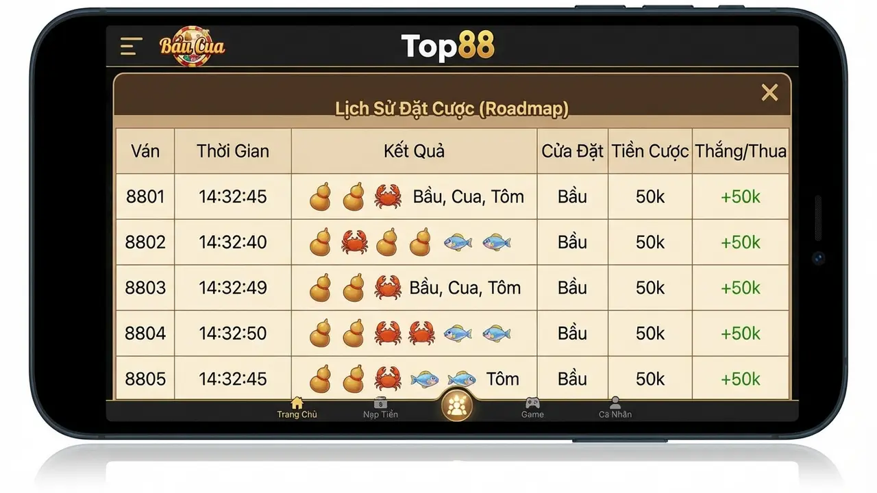 Đây chính là công cụ đắc lực dành cho các nhà phân tích xác suất. Thay vì phải tự ghi chép một cách thủ công, Top88 tích hợp sẵn một bảng thống kê chi tiết (Roadmap) ngay trên giao diện. Bảng này hiển thị kết quả của hàng trăm phiên cược gần nhất, cho biết tần suất xuất hiện của từng linh vật, các chuỗi kết quả (cầu), và các cặp linh vật thường đi cùng nhau. Dữ liệu này là “mỏ vàng” để người chơi nhận diện quy luật ngắn hạn của thuật toán RNG, từ đó đưa ra quyết định đặt cược có cơ sở khoa học thay vì chỉ dựa vào cảm tính.