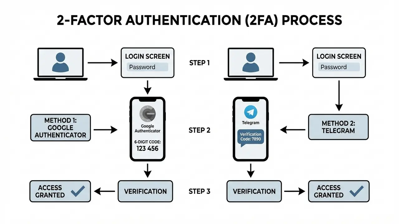 | Xác thực hai lớp (2FA) | Đã bật (Kích hoạt). | Ưu tiên sử dụng phương thức qua ứng dụng thay vì SMS. Kích hoạt ngay nếu chưa có. | Google Authenticator, Authy, Telegram. |